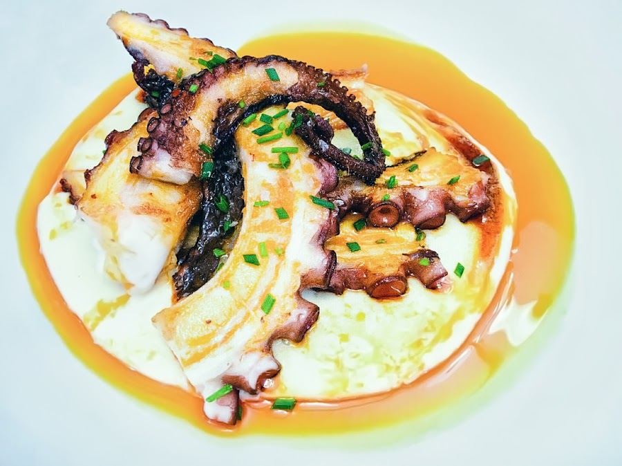 Pulpo a la plancha sobre crema de patata y ajada (13€)