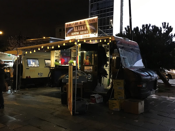 La variedad era bastante grande, como podéis ver en el listado hay desde comida gourmet canaria, a mexicana, italiana, hamburguesas, salmón y bacalao, comida asturiana... Nos quedamos con las ganas de probar un cachopo relleno de foie y setas que tenía una pinta estupenda en el puesto asturiano, pero fuimos por la noche para cenar y justo cerraron la furgoneta, así que otra vez será...