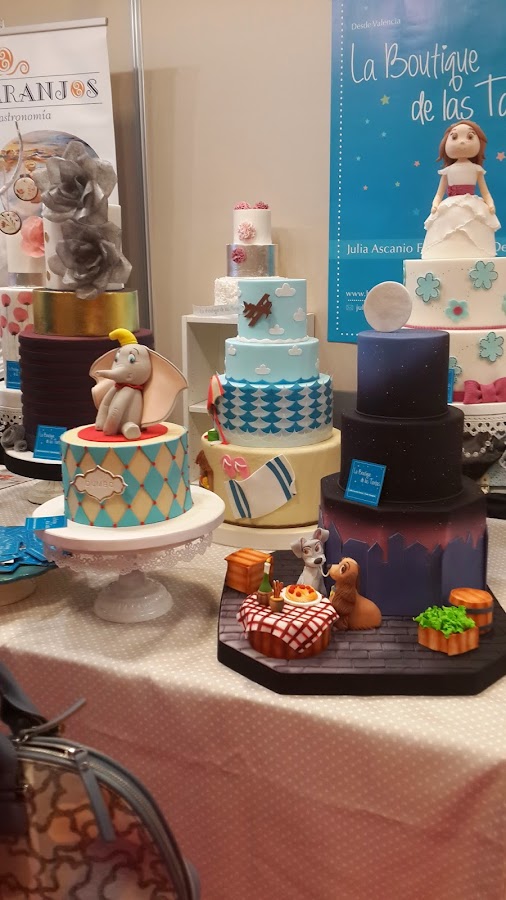 Tartas muy infantiles pero no por eso dejan de ser preciosas, a mi me encantan. Dumbo superbien hecho, la niña de la comunión, las flores del fondo impresionantes, pero en especial me quedo con la representación de la dama y el vagabundo.