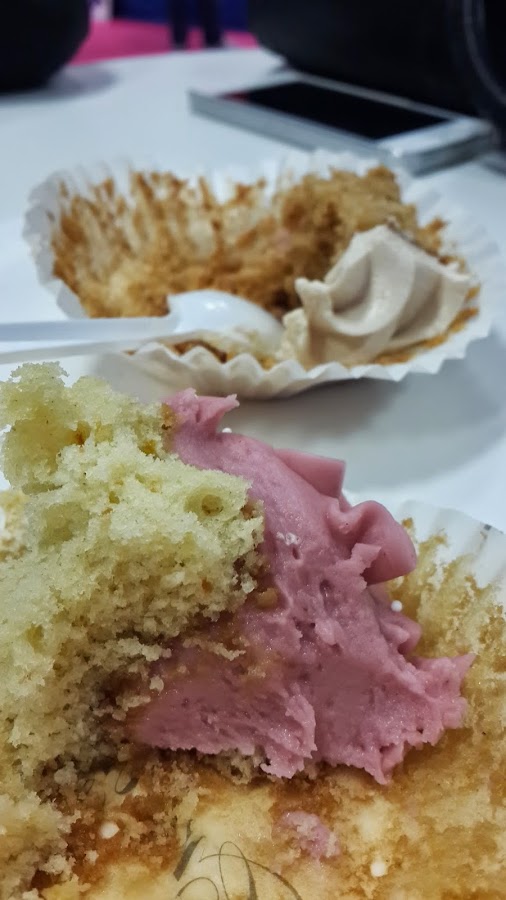 Descanso para probar unos cupcakes, uno de galleta María y el otro de limón y fresa.