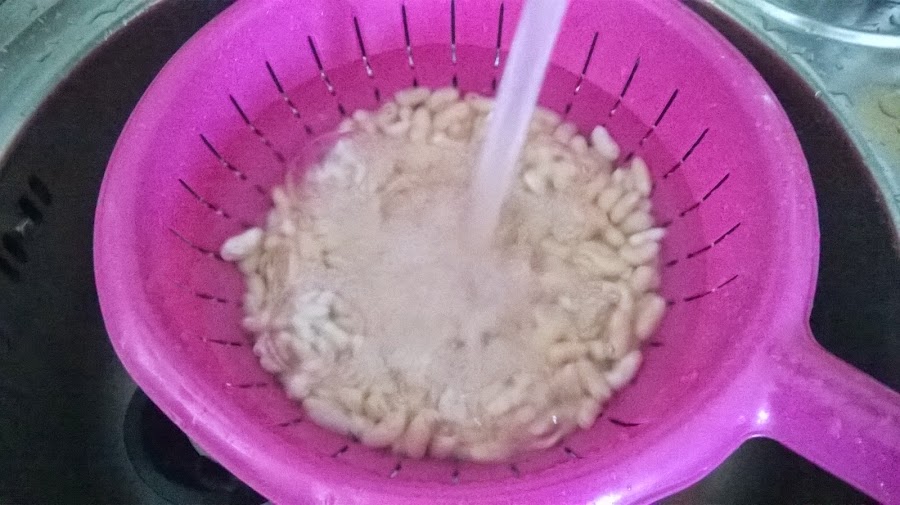 Una vez que la veamos arrugases, las enfriamos en el grifo de agua fria, las escurrimos y la ponemos en una Olla y le agregamos junto al aceite de oliva,