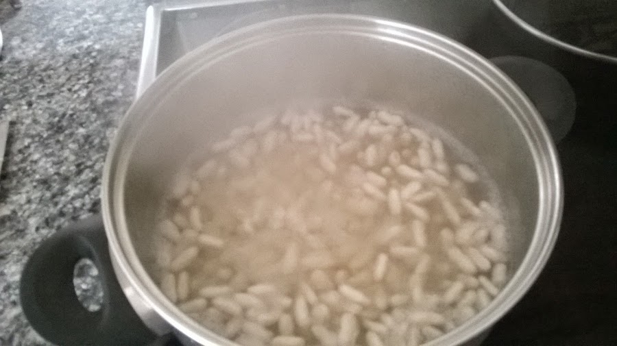 Ponemos las alubias en agua fría a hervir con una pizca de Sal,