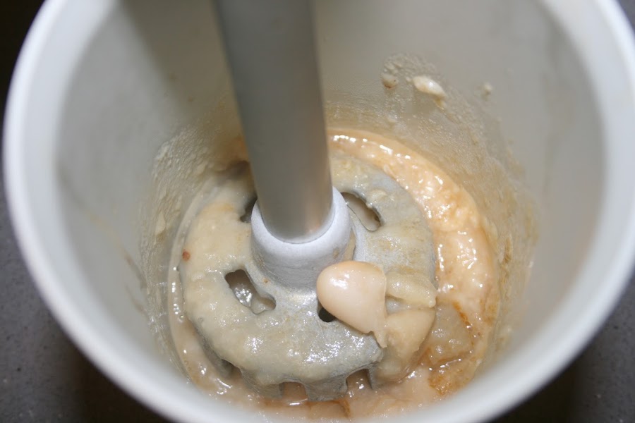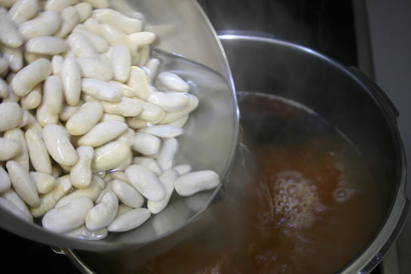Cuando cortemos la cocción, cogemos la cebolla, el ajo y unas pocas de judías y lo batimos todos junto y lo volvemos a echar a la olla.