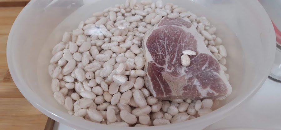 1.- Ponemos a remojo las judias blancas y el lacón, la noche anterior.