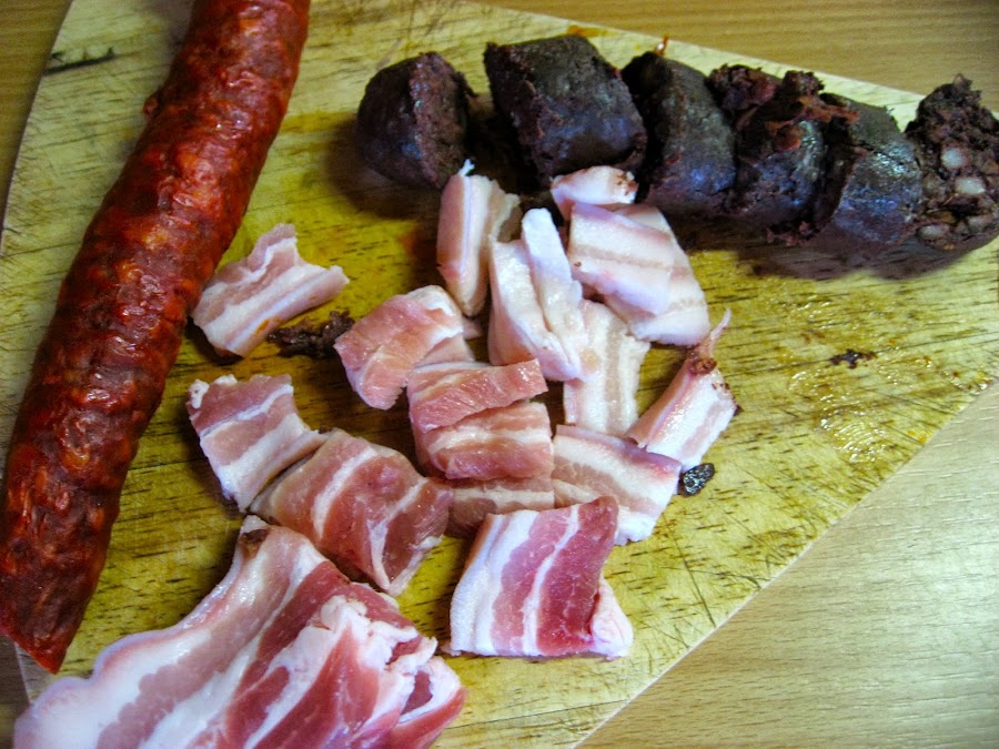 2 Morcillas Asturianas, (igual que antes sino tenemos cualquier tipo de morcilla que nos guste, acordaros de todas formas que según sea el gusto de nuestros ingredientes así será el resultado, por lo que si os diría que fuerais un poco selectivos a la hora de comprar los ingredientes).