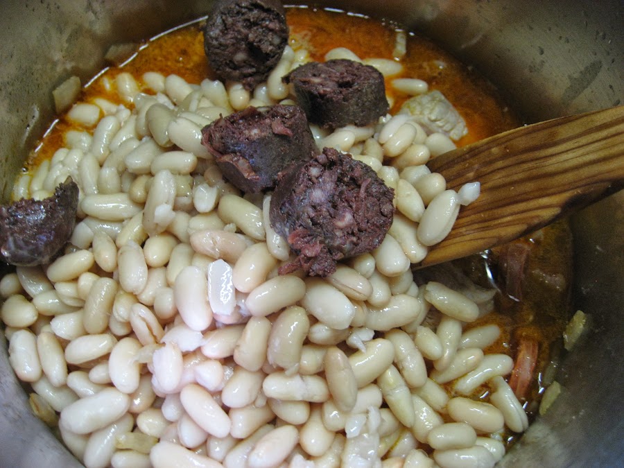 6º " Abrimos la olla a presión y rectificamos de sal y ya tenemos nuestra FABADA ASTURIANA, o de cualquier otra parte, depende de donde la hagamos, je-je-je.
