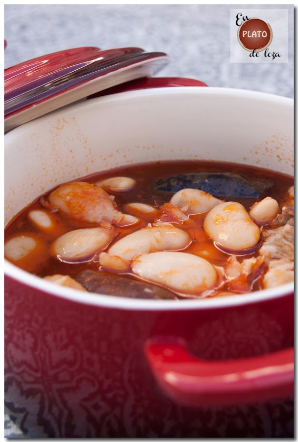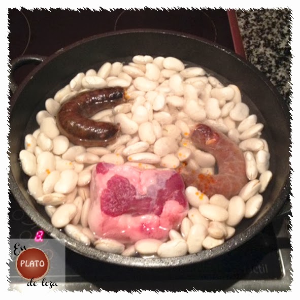 A ver, espero que los asturianos no me pongan muchas pegas. Mi receta viene directamente de sus conocimientos, es decir, de algún libro que adquirí en mi viaje hace ya demasiados años a Asturias (tengo que repetir) y al "bicheo propio" de internet en páginas locales. También digo que me cuesta la misma vida encontrar por aquí fabes como Dios manda para prepararlas, de hecho las de la foto no me convencen demasiado y que el lacón aquí tampoco es fácil de encontrar.