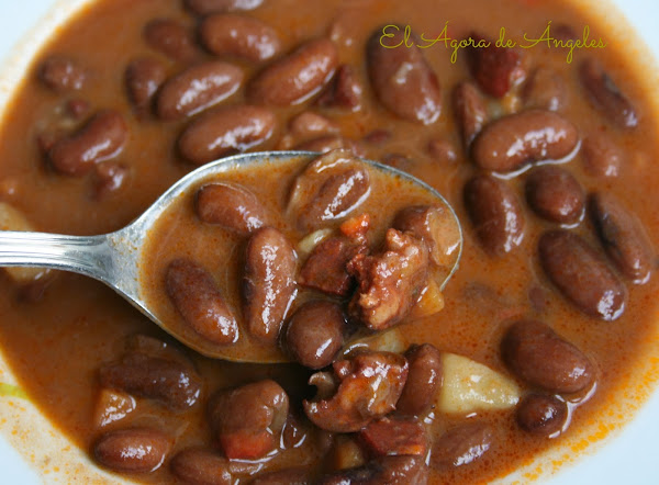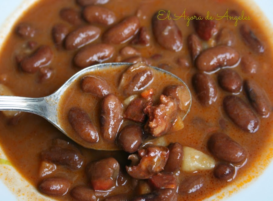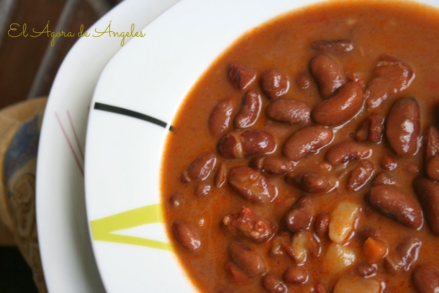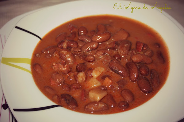 Aunque tendría que haberlas llamado alubias, porque son alubias compradas en León; pero en Asturias nos usamos el vocablo alubia.