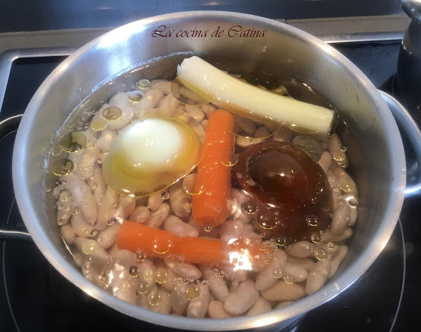 El día anterior a la preparación de esta receta, ponemos las fabes a remojo en un recipiente con abundante agua fría.