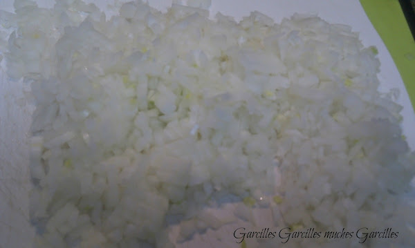 Al dia siguiente, picar muy pequeña la cebolla y los dientes de ajo