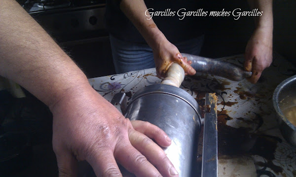 Aqui veis la masera con parte del relleno pa embutir y facer morcielles