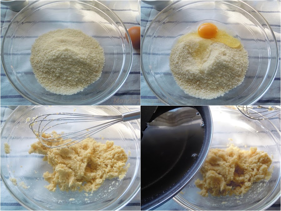 Pon la almendra molida en un bol y añade el huevo, mezcla bien.