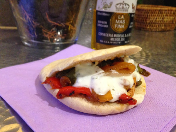 Sí, ¡no me he vuelto loca! Soy consciente de qué un "fajibab" no existe, pero no sabía cómo llamar a esta receta y os explico el por qué: el relleno es el clásico de una fajita mexicana (pollo, pimiento rojo y verde y cebolla), pero como no tenía tortitas de maíz, decidí hacerlos con pan de pita que sí tenía en casa. ¡Al final me quedó un kebab muy mexicano! Jaja! Además, decidí coronarlo con una salsita de yogur muy parecida a la de los kebabs auténticos. ¡Una delicia vamos!