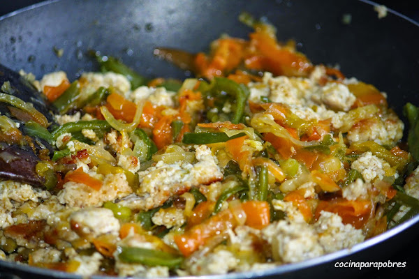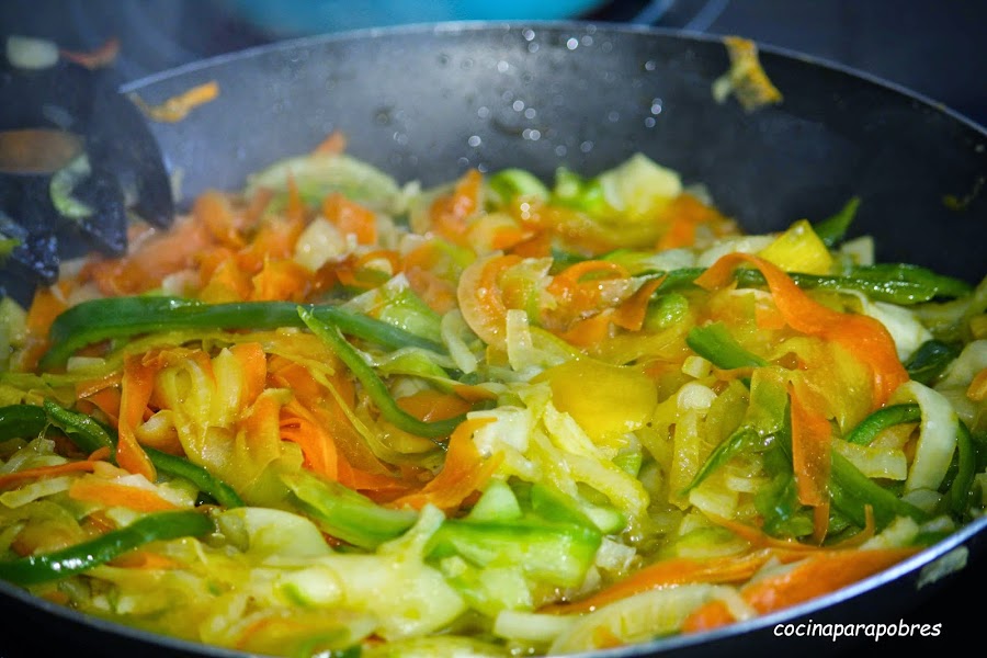 queso en lonchaEn un una sartén con aceite pondremos las verduras cortadas finamente, yo corté la zanahoria y el calabacin con el pela patatas , logrando así que quedaran muy finos.