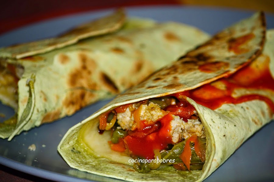 La fajitas son de espinacas, las compre en una de las promociones que vienen en algunos supermercados dando a conocer productos de otros países, las había de espinaca y de tomate. Muy buenas las dos.