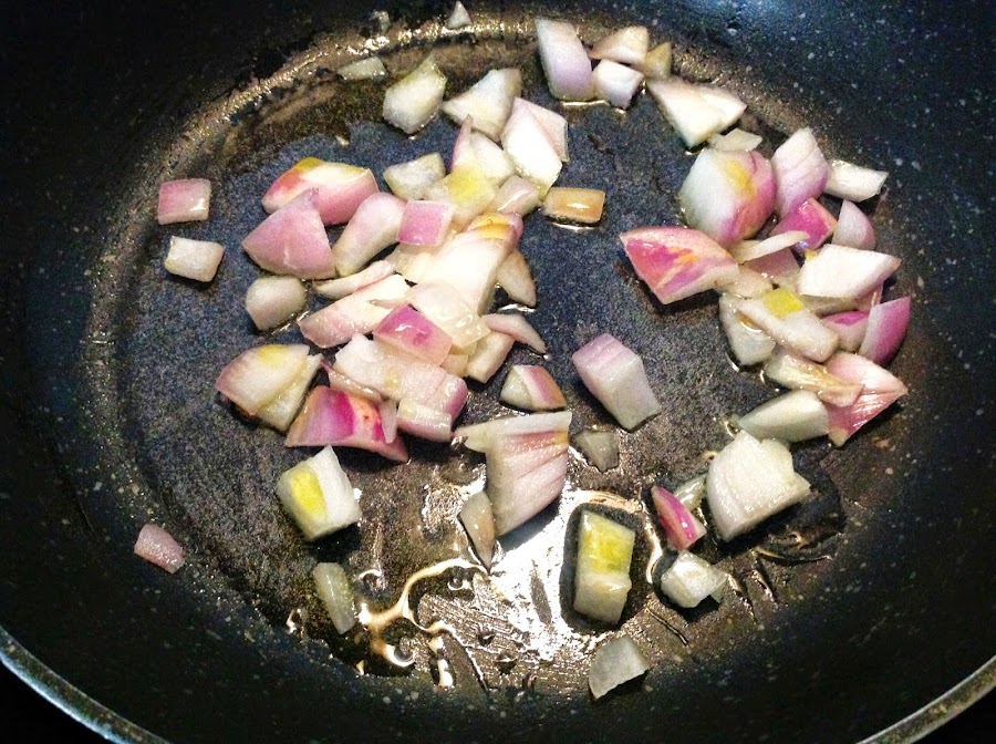 En una sartén, añade 2/3 cucharadas de aceite de oliva virgen extra y pon a rehogar 1 cebolla cortada a dados.