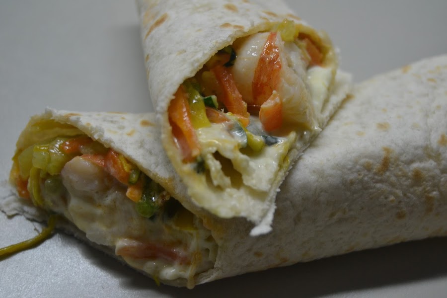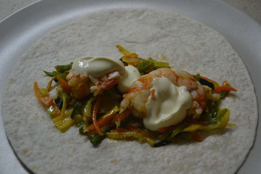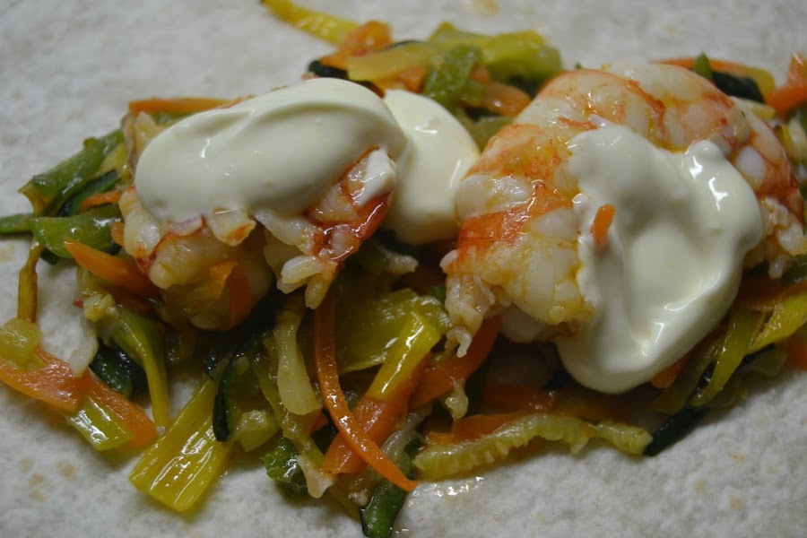 En cada fajita ponemos un poco de la mezcla de verduras con un poco de mayonesa encima.
