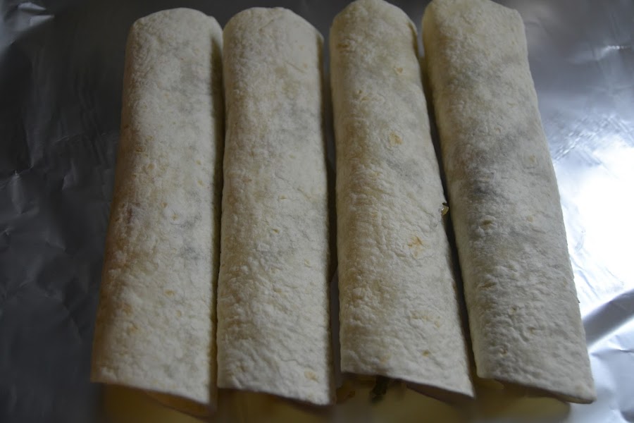 Cerramos la fajita y las colocamos en una fuente de horno. Las tapamos con papel de aluminio y las tenemos unos diez minutos a 170 grados, de esta forma las preparo todas y en el momento de cenar les doy el golpe de horno.