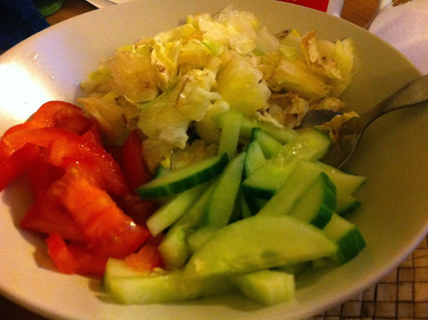 En otro recipiente vamos a trocear la lechuga, tomate y pepino.