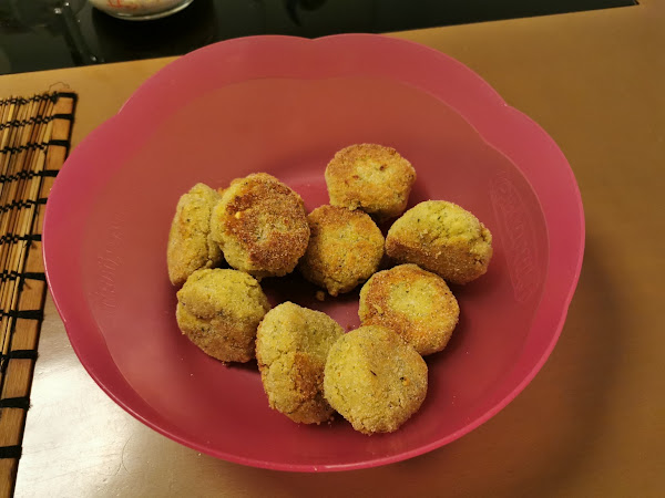 Pasado este tiempo, iremos formando bolas (algo más pequeñas que las albóndigas), las pasaremos por harina de garbanzo y las aplastaremos para dejarlas de un grosos de, más o menos, un centímetro. Mientras vamos haciendo bolas, pondremos a calentar una sartén con aceite suficiente (o la freidora, cada uno a su elección).