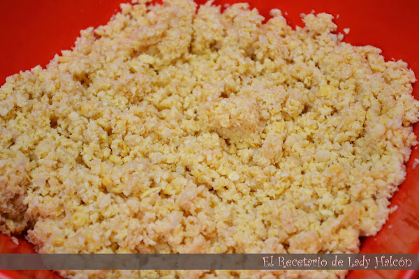 Comenzamos triturando los garbanzos crudos hasta conseguir una textura arenosa, pero no hay que pulverizarlos. Como veis, yo me decanté por una arena gorda jaja :).