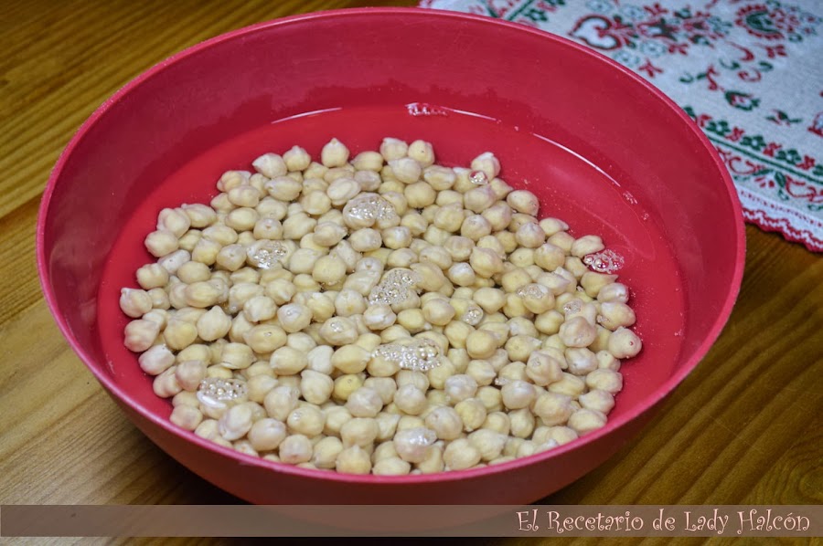 Por cierto, si queréis preparad esta receta pensadlo un día antes para que pongáis los garbanzos en remojo o acabareis como yo, un miércoles a las diez de la noche picando garbanzos y demás ingredientes por que se me pasó leer en todas las recetas que vi (y fueron unas cuantas) que los garbanzos cocidos no sirven... En fin, es el resultado de una semana estresante jeje.