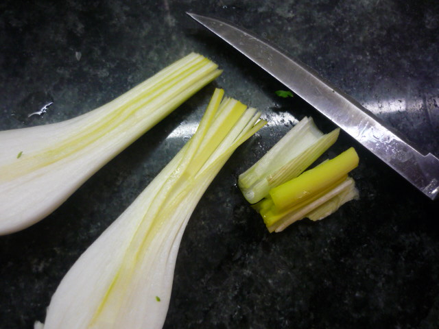 2.- Picamos los ajos y el cilantro y los añadimos.