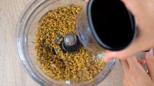 Ahora ponemos las lentejas hidratadas en la picadora y las picamos también hasta obtener una pasta. Si quieres puedes dejar algunas que queden enteras para poder encontrar trocitos al comerlas.
