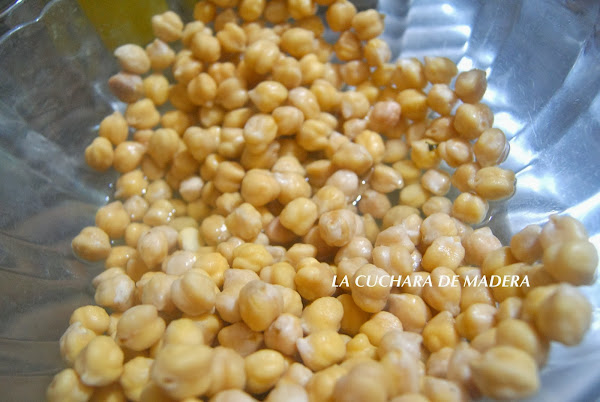 Necesitamos poner el día anterior los garbanzos en agua, deben estar 24 horas como mínimo.Los lavamos y escurrimos.