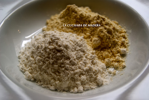 En un plato colocamos las dos tipos de harina, las mezclamos