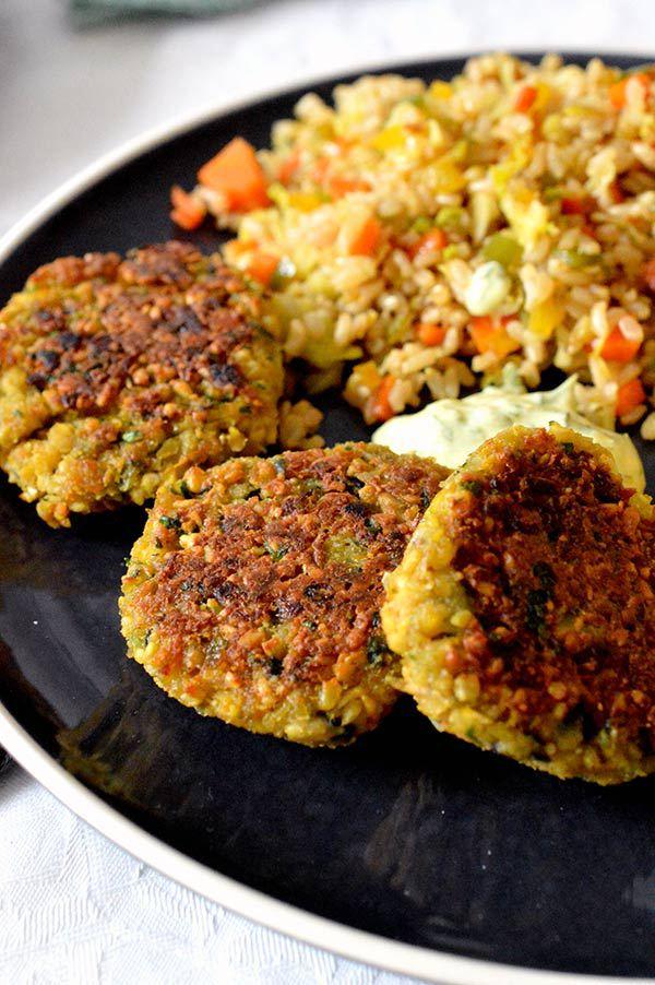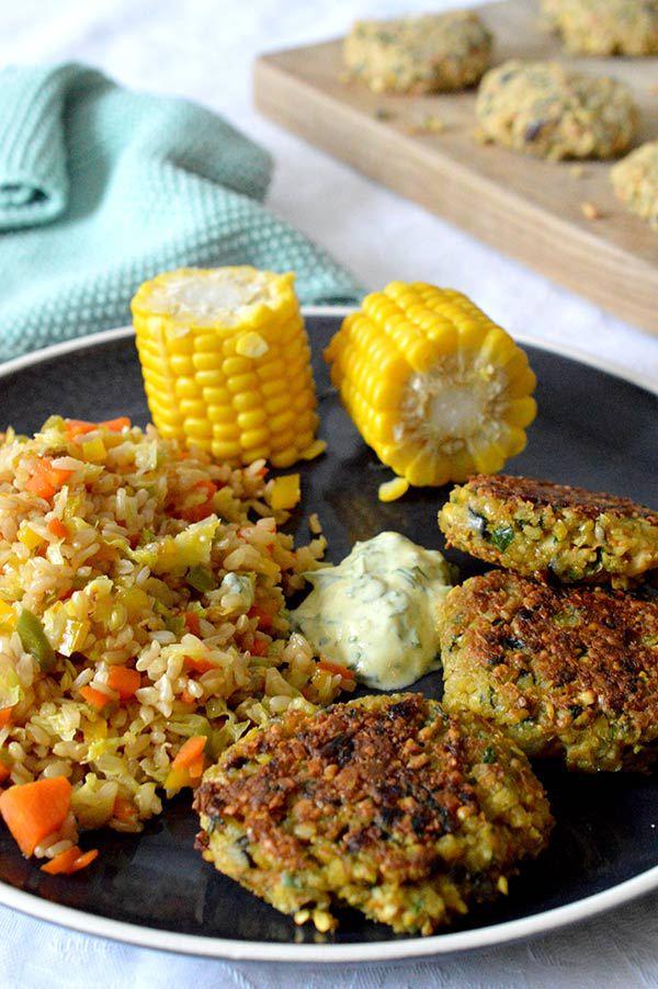 La verdad es que no solo están deliciosos sino que ademas me han salido muchísimos con lo que los he podido congelar y así poderlos disfrutar otros días! Un día los comimos con pan de durum, cebolla encurtida, un poco de humus, salsa de yogur y unas hojas verdes, pero ayer que los preparé de nuevo para comer los acompañamos de una arroz integral con verduras y un poco de maíz cocido! La verdad es que están super buenos así que animaros a prepararlos y ya veréis que delicia!
