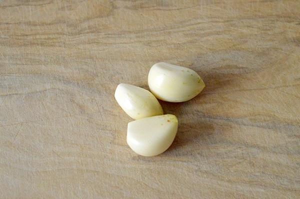 A continuación pelamos y picamos los dos ajos. Los añadimos a los garbanzos.