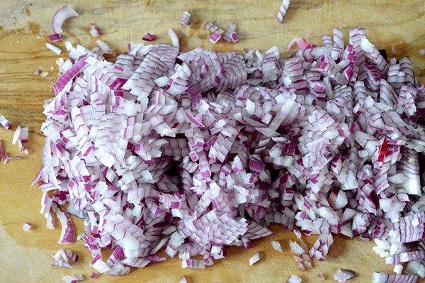 Picamos las cebollas muy finamente. Las añadimos