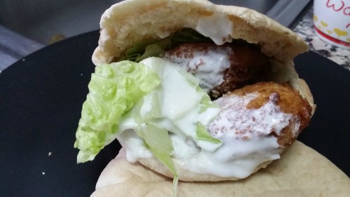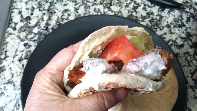 al gusto y los falafel (consejo: dos falafel por cada pan de pita) y la salsa de yogur… uhmmmmm