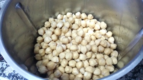 Se vuelven a poner los garbanzos y se añade el resto de ingredientes (cominos, sal y la levadura o el bicarbonato).