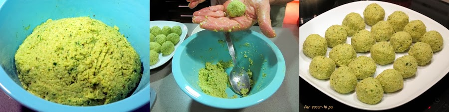 Formar las bolas de faláfel de un tamaño parecido a una nuez.