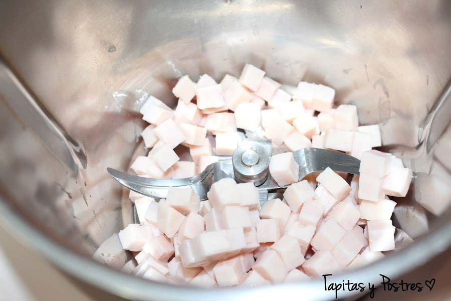 Primero trituramos el jamón.