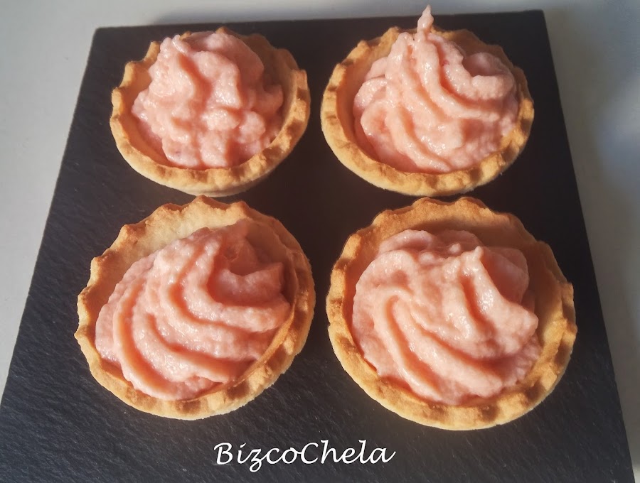 Y es que el otro día, en uno de lo muchos bares que estuve en los Madriles, me pusieron una canastilla rellena de una mousse que si no era esta, era prima hermana, y me recordó esta receta, que no lleva salmón, pero da el pego, y si no, comprobadlo.