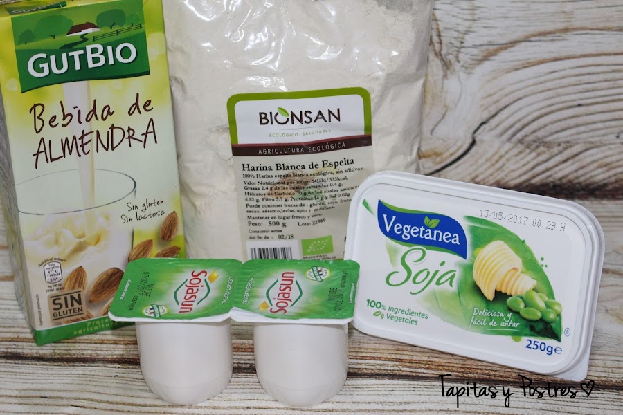Estos son los ingredientes que yo usé. Podéis poner ingredientes lácteos si no tenéis problemas de alergias alimentarias.