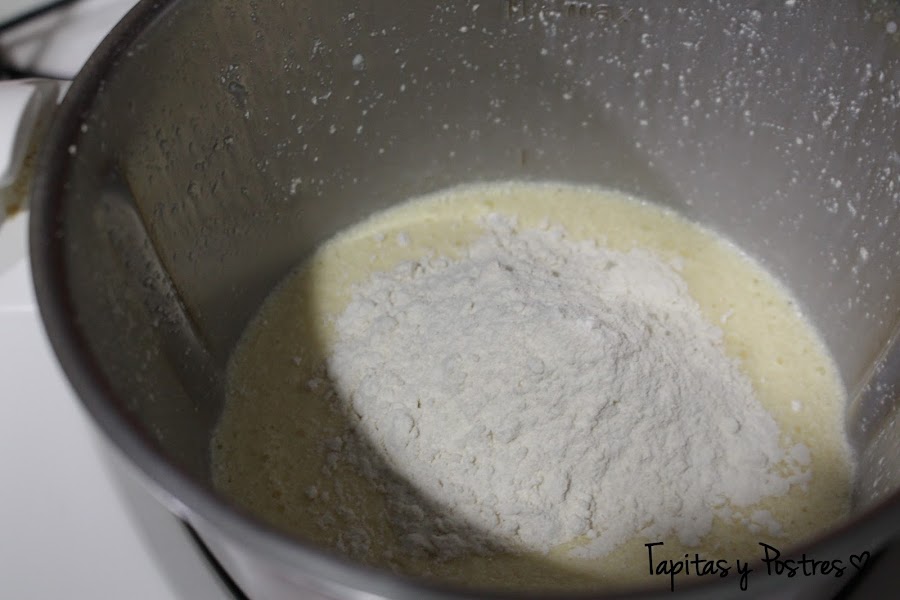 Leche, margarina y harina. A batir hasta que esté bien mezclado todo.