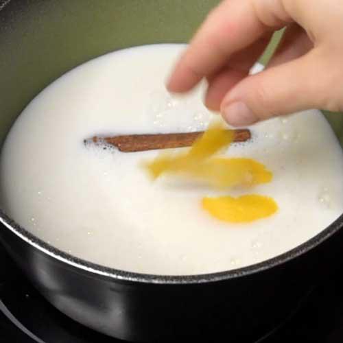 Luego, apartamos del fuego y quitamos la canela y los restos de pieles de cítrico.