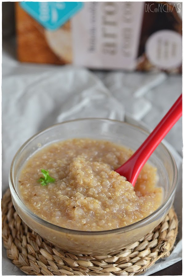 La elaboración, es la misma que tenéis aquí, en mi receta. Simplemente cambió el arroz por quinoa y la leche por bebida de arroz