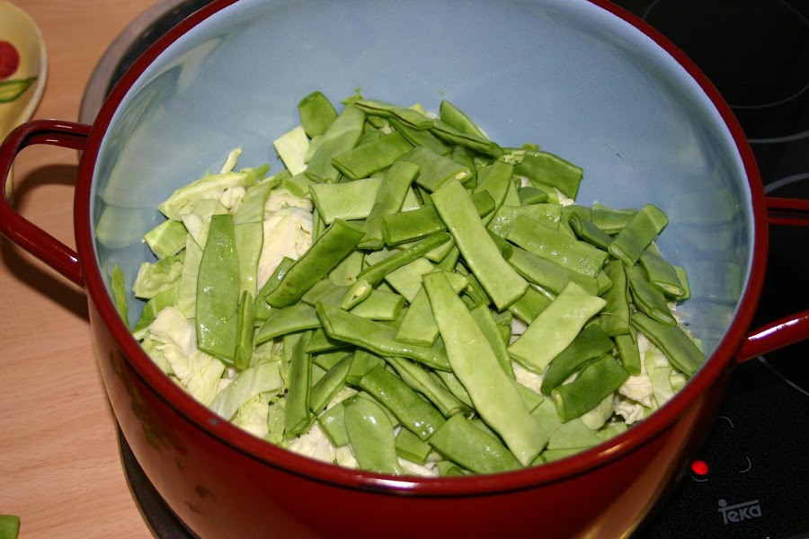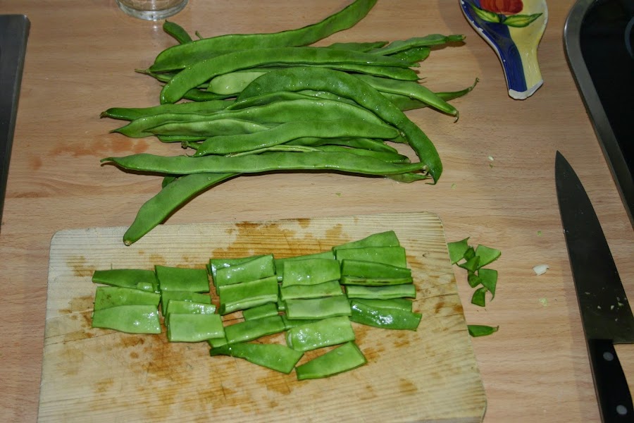 ahora es el turno de las judias verdes, quitamos las hebras y laspartimos en trozos
