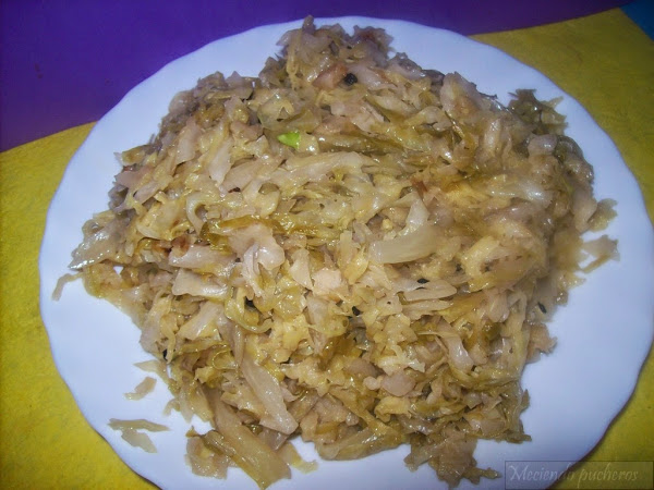 Vosotros darle el punto que mas os guste, el caso es que, cuando el repollo nos quede seco, habrá concluido la receta. Si os sobra chucrut podéis meterlo en un tarro con agua y vinagre y os aguantará, así conservado en la nevera, al menos dos meses.