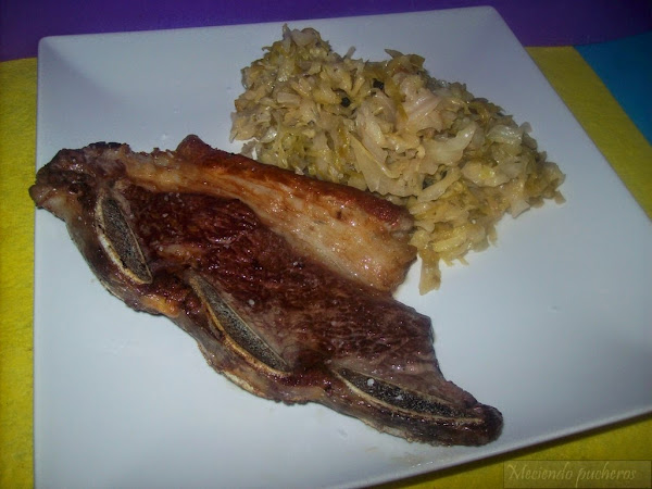 Con éste falso chucrut vamos a conseguir un resultado similar que nos va a venir de perlas para servir los tradicionales codillos o salchichas alemanas acompañados de puré de patatas aunque viene bien también para acompañar otras carnes y embutidos que es la forma en la que tradicionalmente se consume. En una de las fotos que os aporto, me sirvió para acompañar un churrasco a la plancha y en otra, unas salchichas.