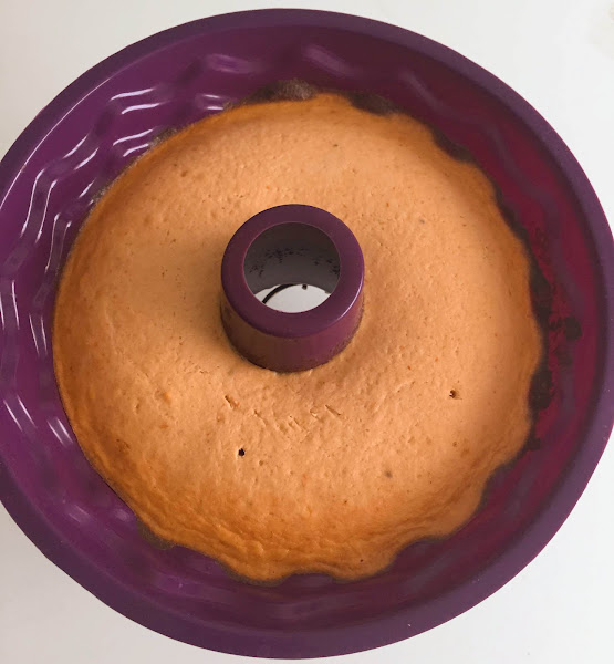 Se tritura todo junto hasta que quede una textura ligera y uniforme y se vierte en un molde de silicona. Para que se cueza de forma homogénea y quede muy jugoso es mejor cocinarlo al baño maría. Se introduce el molde dentro de una bandeja de horno profunda y se rellena la bandeja con agua (ojo que no entre agua en el molde del pastel).