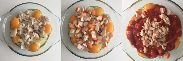 La receta es sencillísima. Por un lado, se cuece el pescado, se limpia de espinas y se desmenuza. Se le van añadiendo el resto de ingredientes: