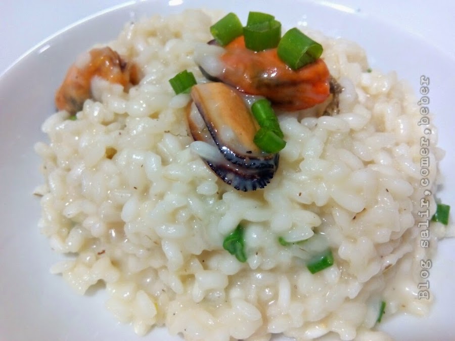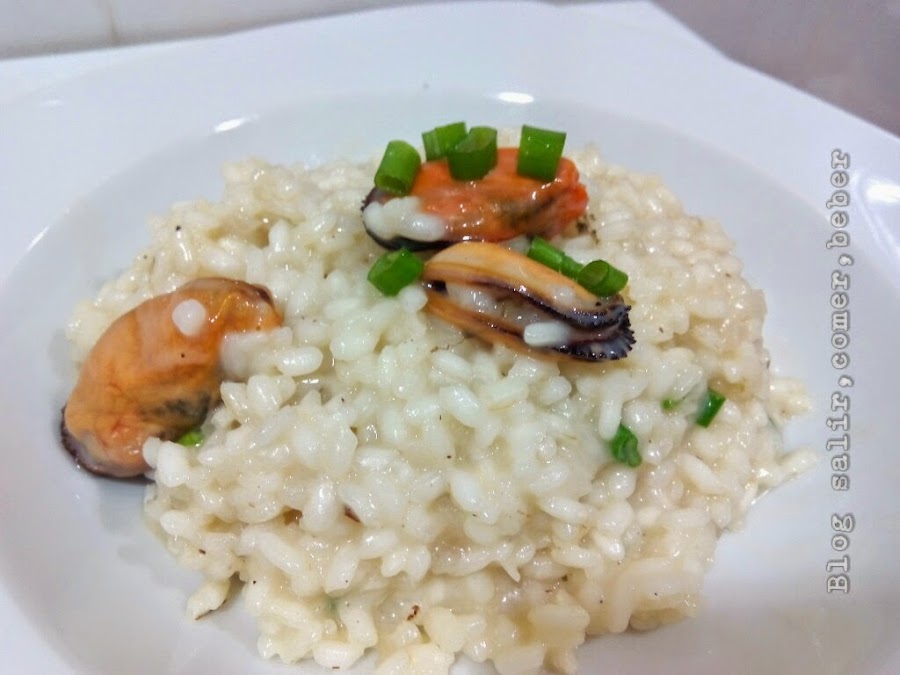 Dejamos reposar un par de minutos y al emplatarlo le añadimos un poco de cebollino que le dará un toque refrescante. Ya podemos abrir una botella de vino blanco, por ejemplo, un Barbadillo andaluz que marina bien con el toque marinero de este risotto...