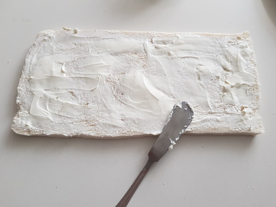 He utilizado un pan de molde sin corteza que vende especial para hacer rollos, pero, si no lo encontráis, podéis utilizar el normal, lo que pasa que tendréis que hacer en 2 veces lo que hago yo en una.