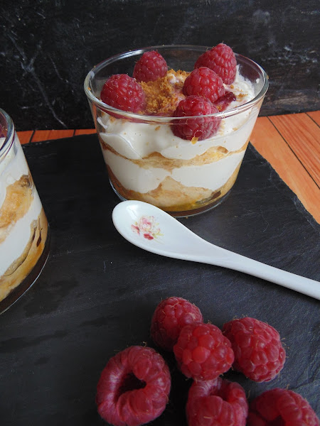 Hoy toca contaros una historia real, que pudo haberle pasado a cualquiera (ja, ja!): tienes invitados a cenar. Has preparado unos platos deliciosos de los que te sientes orgullosa, pero no... Horror!!!! Se te ha olvidado el postre!!!.Y además no te quedan más de 10 minutos para prepararlo. Abres la nevera y ves que tienes: un trozo de bizcocho de ayer, unas frambuesas, unas pocas fresas, un par de naranjas, mascarpone, y 2 yogures. ¿Qué haces? Pues un falso tiramisú, y quedas fenomenal.